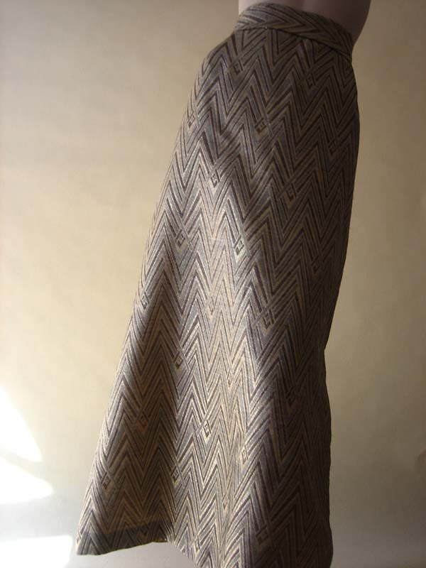 Maxi evening skirt, brocade zigzag pattern in gold / beige / mocha